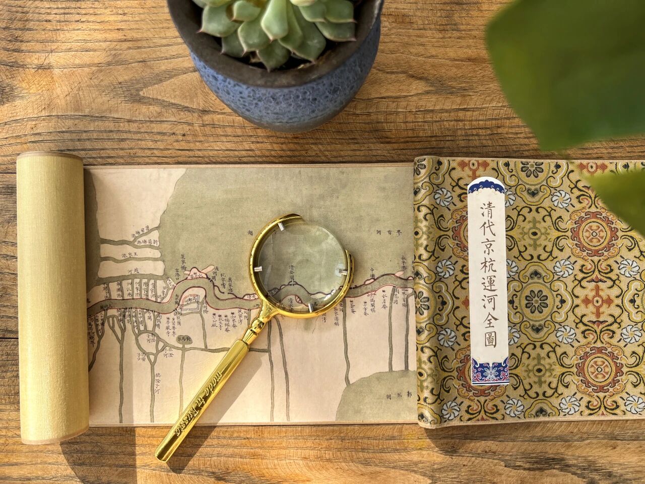 十竹斋系列28件,源于明代胡正言《十竹斋书画谱》,有“纤妙精雅,旷古无论”的美誉,文创产品精准复刻画谱神韵;运河全图系列4件,源于馆藏经折装清代彩绘本《运河全图》,衍生文创令京镇风貌在眼前铺展,令运河水脉在指尖流淌。