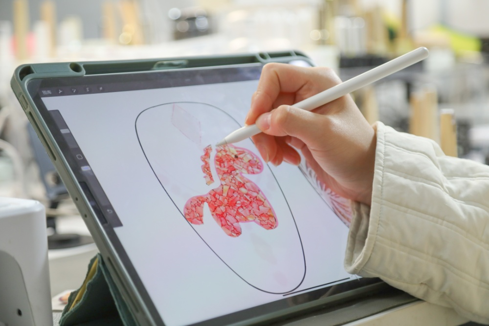 1月7日,连云港市东海县一家穿戴甲生产企业车间里,工作人员正在制作一批出口的马年生肖元素穿戴甲。李娇 摄 视觉江苏网供图