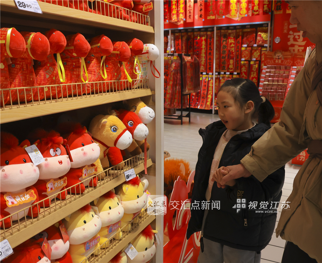 1月13日,苏州市民在超市选购马年饰品和年货。阙明芬 摄 视觉江苏网供图