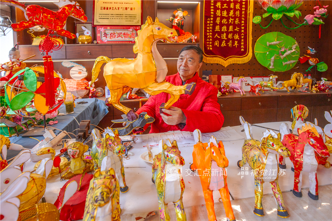1月1日,南京市民俗(非遗)博物馆内,江苏省级非遗代表性传承人曹真荣正在工作室创作马年生肖花灯。任康摄 视觉江苏网供图