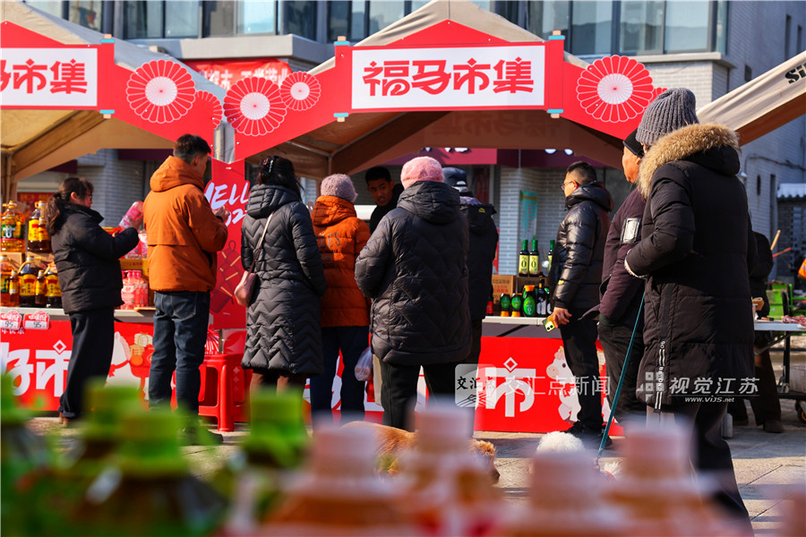 1月23日,为期3天的“马踏福至,万象更新” 主题年货大集在南京宝船厂遗址公园开集,吸引众多市民前来赶大集、购年货、品美食,迎接即将到来的春节。刘建华 摄 视觉江苏网供图