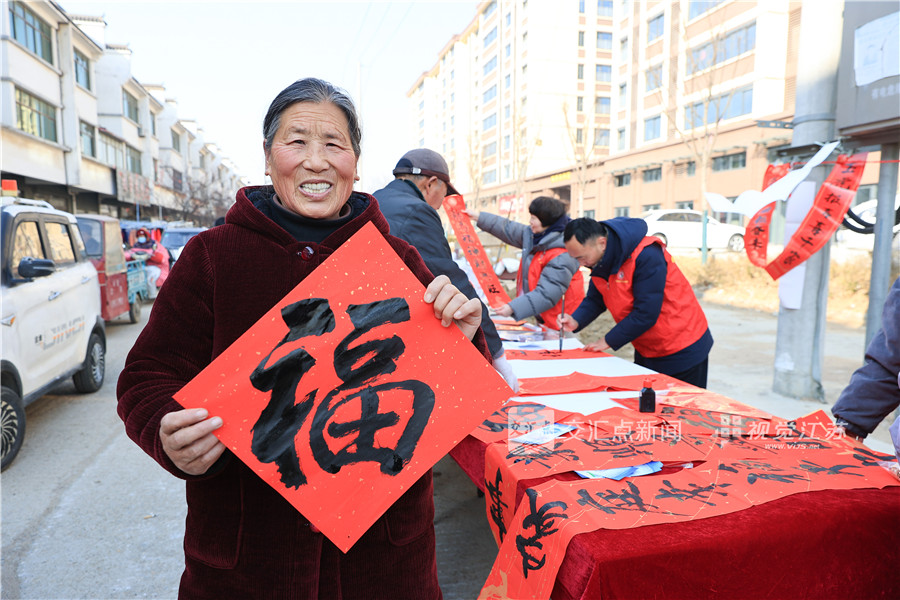 1月23日,连云港市赣榆区自然资源和规划局组织书法爱好者,走进班庄镇开展“写春联、送祝福”文化惠民活动。司伟 周玉 摄 视觉江苏网供图