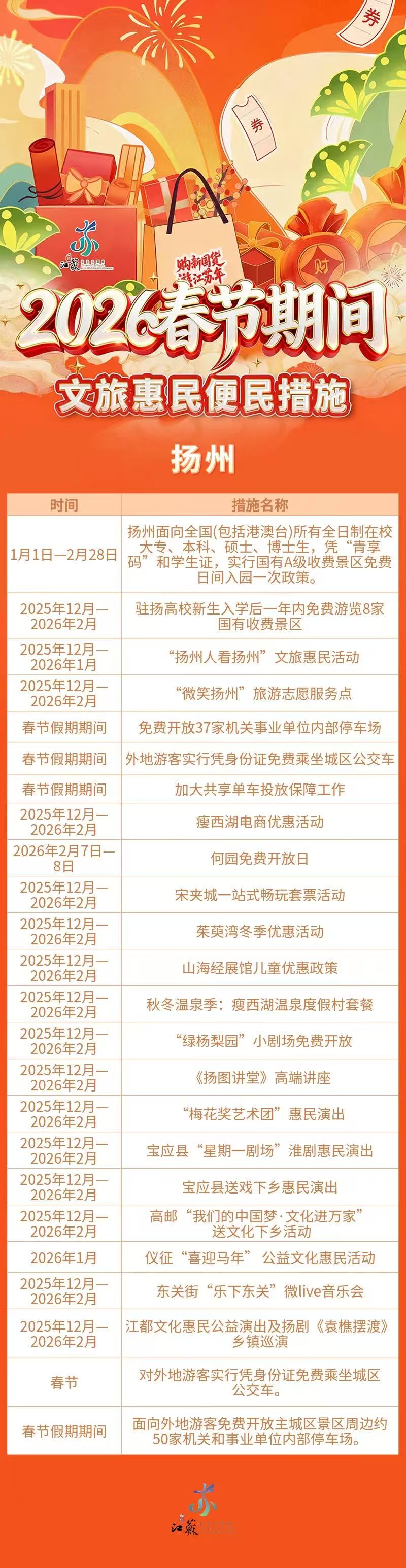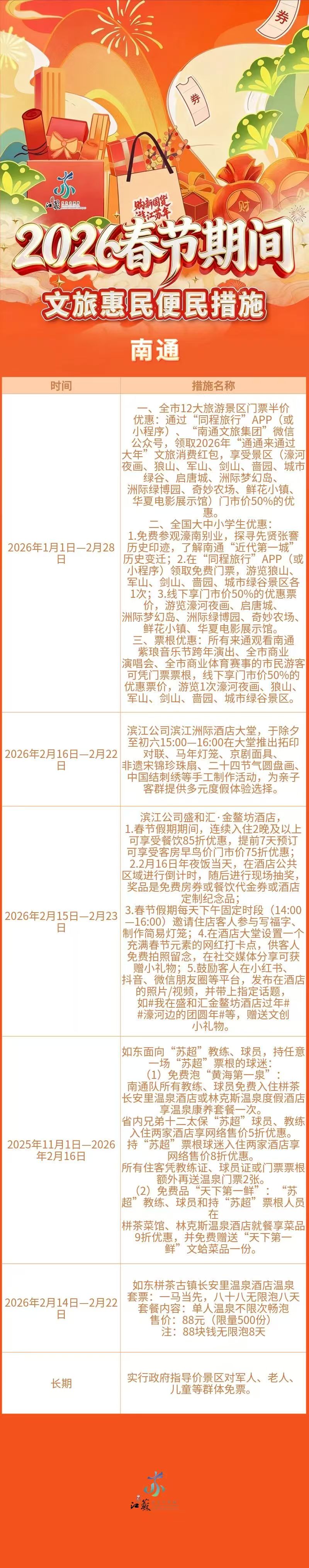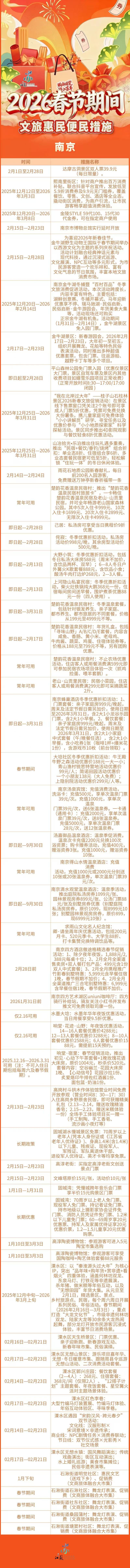 记者从江苏省文旅厅获悉,今年春节期间,全省各地推出300余条文旅惠民措施,用真金白银的优惠和贴心周到的服务,为市民游客的新春旅途保驾护航。