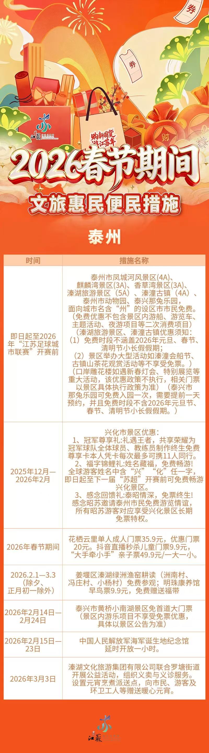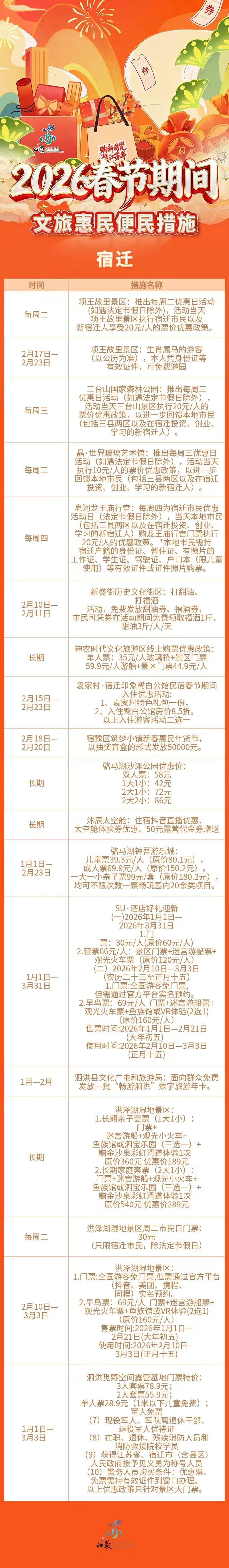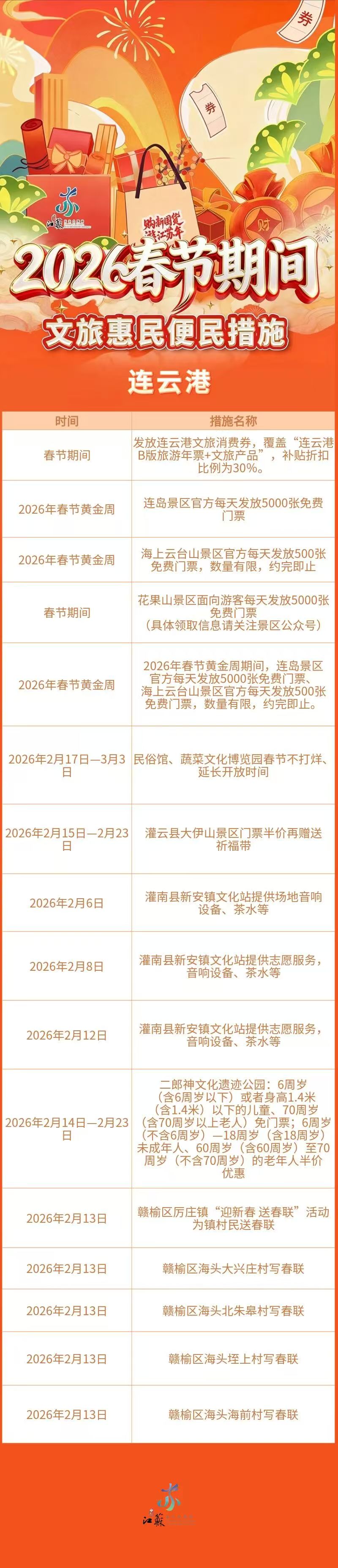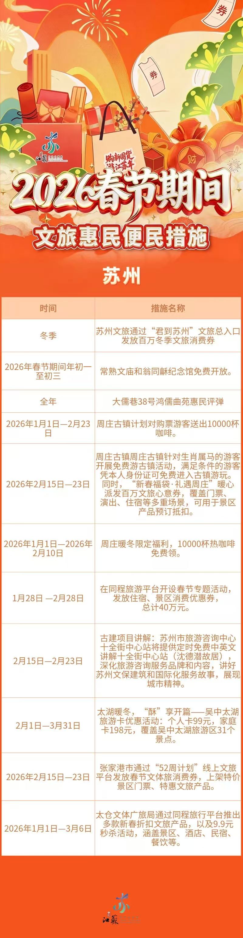记者从江苏省文旅厅获悉,今年春节期间,全省各地推出300余条文旅惠民措施,用真金白银的优惠和贴心周到的服务,为市民游客的新春旅途保驾护航。