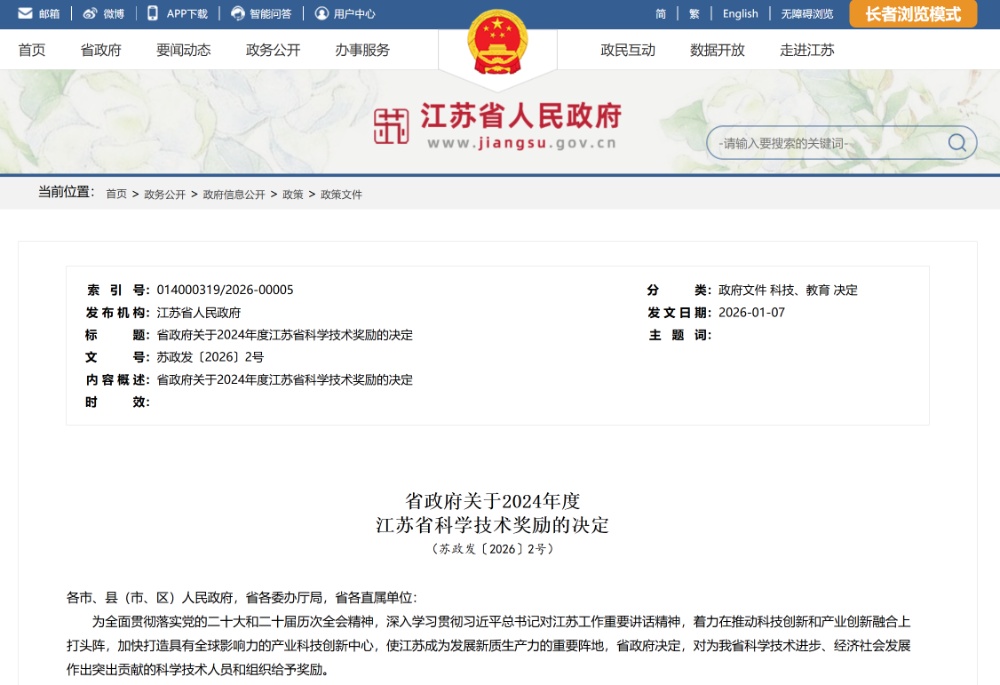 省政府奖励决定指出,希望获奖单位和个人珍惜荣誉、再接再厉,在实现高水平科技自立自强上勇攀高峰、再创佳绩。全省科技工作者要以获奖者为榜样,胸怀“国之大者”,坚持“四个面向”,大力弘扬新时代科学家精神,勇担科技强国建设使命,加强原创性、引领性科技攻关,促进科技成果转化应用,以科技创新引领产业创新,为奋力谱写“强富美高”新江苏现代化建设新篇章提供更加坚实的科技支撑。
