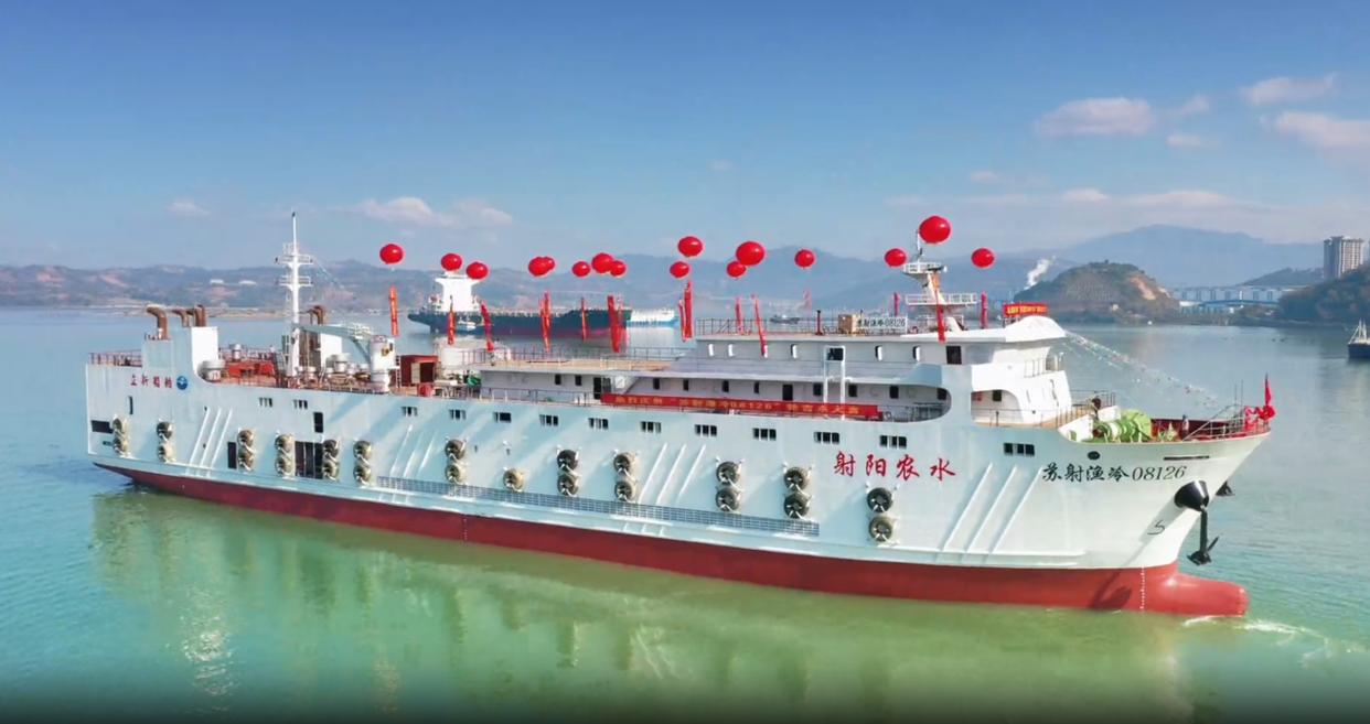 交汇点讯 近日,国内最大、全省首艘集海产品海上加工、冷链仓储及捕捞产销一体化的加工船在江苏射阳顺利吉水。该项目由射阳县农业农村局牵头推进,将创新海产品加工模式,巩固射阳“蓝色粮仓”地位,助力黄沙港国家中心渔港打造华东最大水产交易中心。