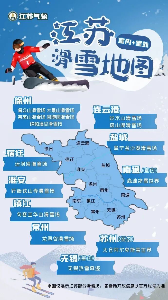 恰逢江苏即将迎来雨雪天气,滑雪爱好者们的福利也来了。一份覆盖全省的江苏滑雪地图新鲜出炉,室内+室外雪场全覆盖,从徐州到苏州,不管你身处哪个城市,都能找到最近的雪场。同时,关于滑雪装备怎么选、哪些气象要素会直接影响滑雪体验、粉雪、冰壳雪、黏雪等不同雪质的滑行感受差异,也有详细攻略供大家参考。