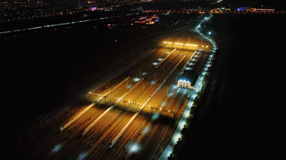交汇点讯 “D48道动车组准备进库,请各单位注意安全!”2月4日23时,室外气温跌至0℃,位于南通市崇川区幸福街道的南通动车运用所,一辆刚刚结束运载任务的CRH2型动车组缓缓驶入检修线,即将接受一场全面“体检”。