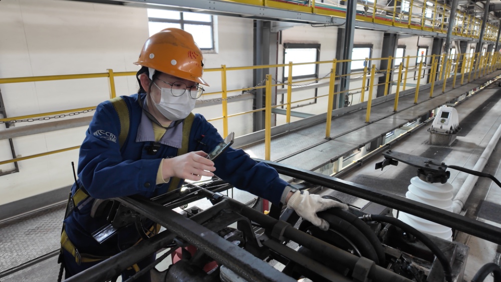 11时14分,秦简完成车顶作业,等动车组供上高压电后,秦简又马不停蹄地投入到司机室检修工作当中,着手开展高压试验。当天,她在自己的工作日志中记录:“今日更换2根碳滑板,擦拭84串绝缘子,对60处受电弓活动机构关节位置涂抹防冻液……”