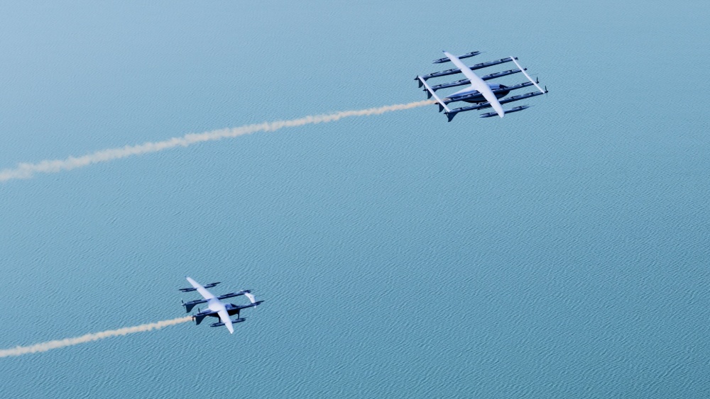 随着低鸣声,V5000天际龙与V2000CG凯瑞鸥编队飞行,如同一只伸展羽翼的巨鸟,在空中划出优美弧线。