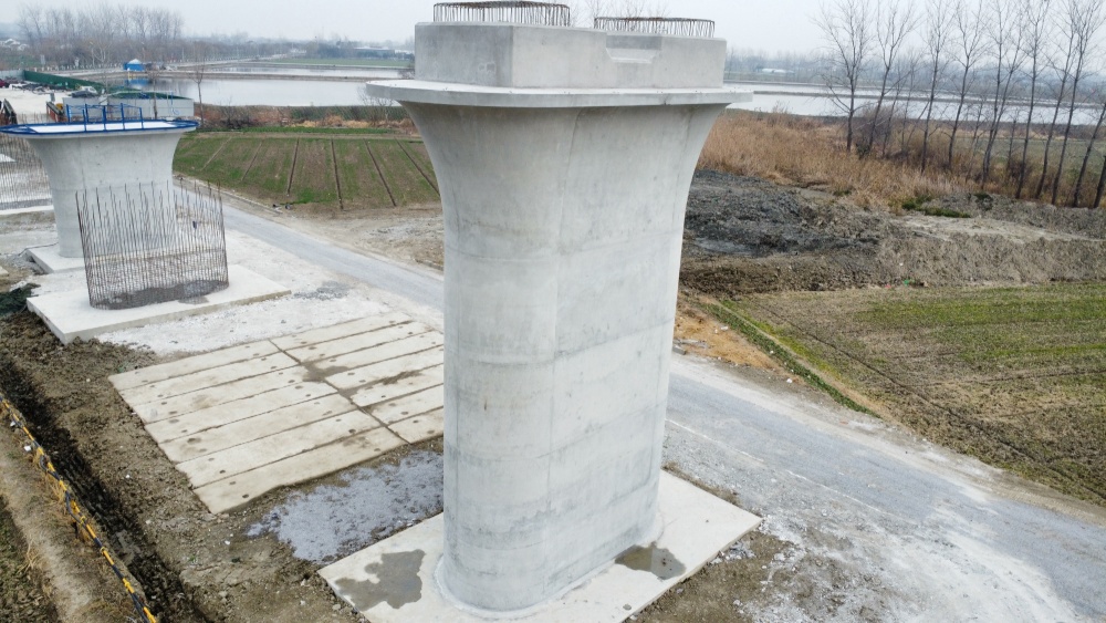 除北沿江、宁淮城际铁路外,盐泰锡常宜铁路建设也同步提速。1月5日,盐泰锡常宜铁路站前1标岐山村特大桥首墩顺利浇筑,主体工程建设取得新进展。岐山村特大桥全长4616.8米,全桥共138个墩身,8座连续梁,连续梁最大跨度80米。此次浇筑的首墩为岐山村特大桥26号墩,该墩为圆端形实体直坡墩,墩高11.5米,采用定型钢模,分两次浇筑完成。