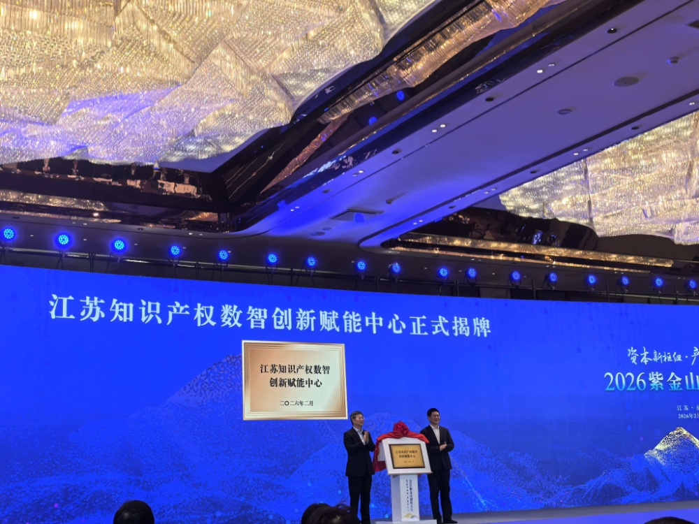 交汇点讯 2月9日,在2026年紫金山创投大会上,江苏知识产权数智创新赋能中心正式揭牌成立。作为江苏省知识产权领域的重要数智化服务平台,该中心围绕“1个数据引擎”和“5个赋能方向”展开建设。