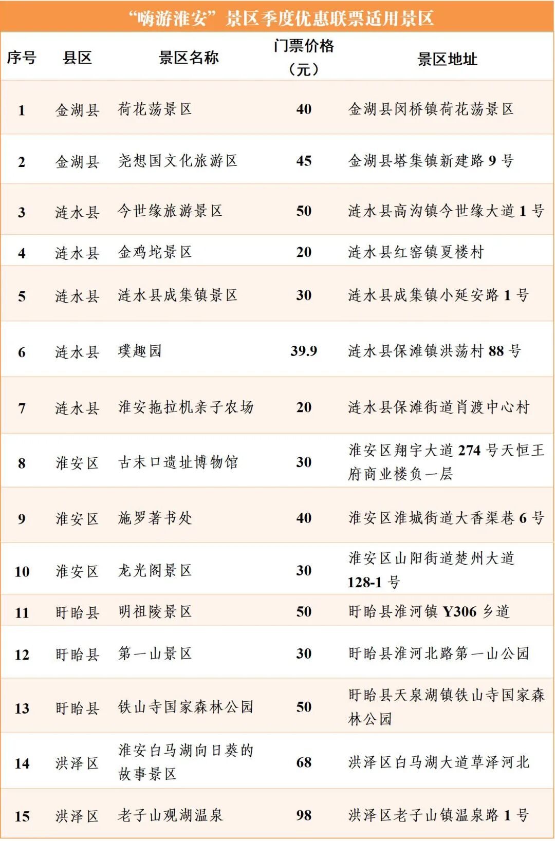 39.9元,解锁淮安七日深度游。2026年新春,淮安发放“嗨游淮安”季度优惠联票,市民与游客通过“文旅淮安”微信公众号或“会游淮安”小程序支付39.9元,即可在参加活动的任意收费景点中免费使用5次(单个景点限1次)。联票激活后有效期为7天,限量发放,先到先得。