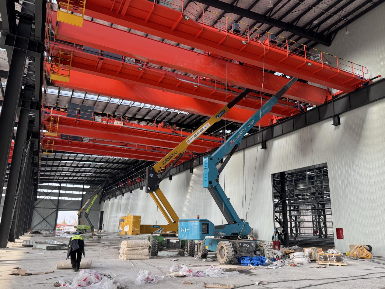 石志韦口中的大项目,是由北京星河动力航天科技股份有限公司总投资20亿元,建设大型可重复使用液体运载火箭智能制造基地。项目建成后,可满足年产10发“智神星二号”大型运载火箭的总装总测、部段铆接装配、多模块箭体仓储、研发办公配套等需求。“去年5月初,我们到龙袍新城产业片区时,这是一块空地。随着项目稳步推进,用地面积约118亩,长度超过240米,高度24米的厂房现如今拔地而起,今年1月已经封顶。目前,室内外装修及附属工程整体完成约85%,计划3月完成竣工验收并进入交付阶段。”跟随石志韦的介绍,记者看到一座长方形的巨大建筑已全新呈现。建筑内,成排的钢架支撑起红色的双梁桥式起重机,用以配合火箭组装航吊。