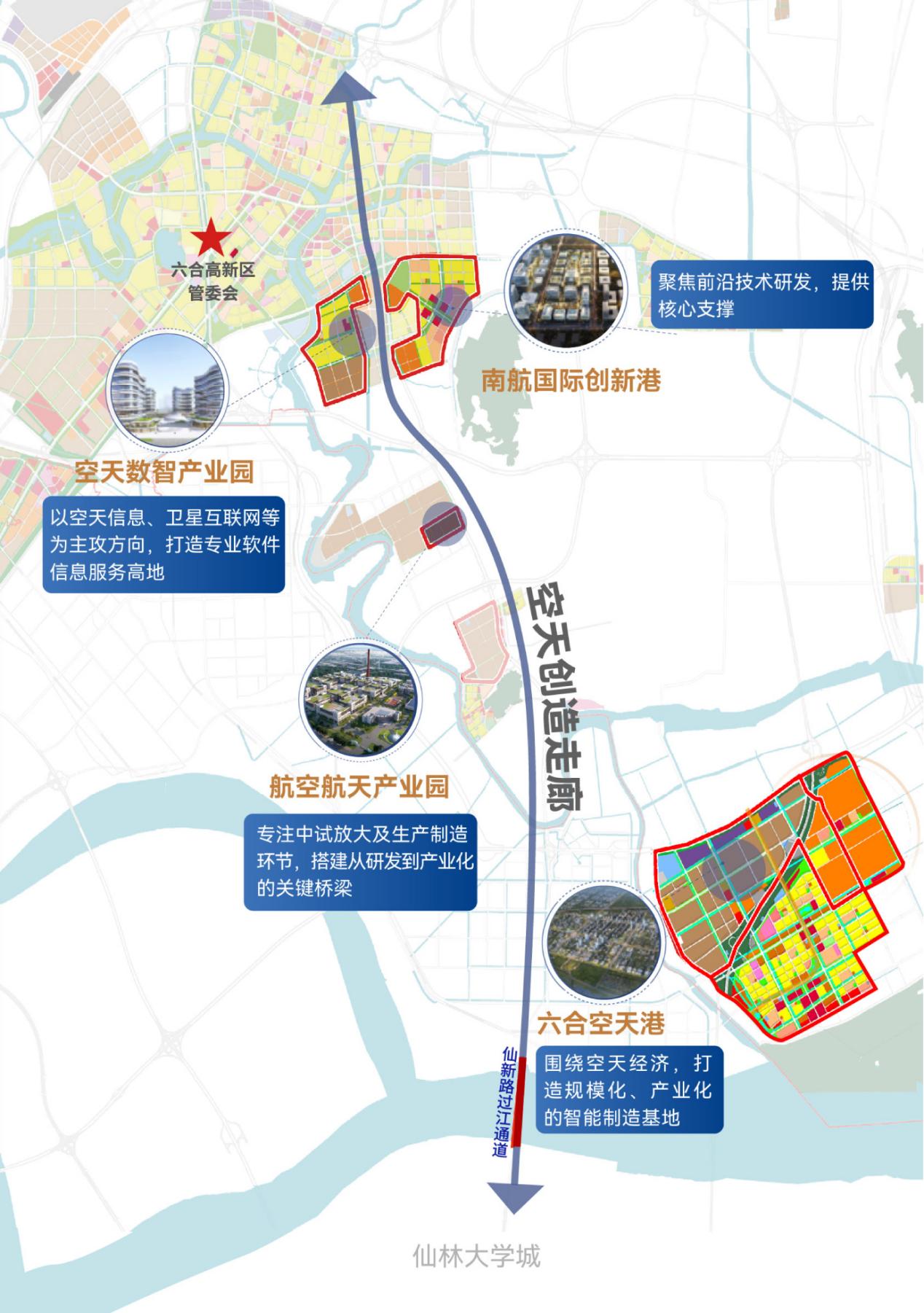 星河动力的落子是六合构建产业生态的重要一环。当前,六合空天港规划卫星应用、卫星制造、运载火箭制造三大片区,推动形成覆盖研发、制造与服务的产业链生态闭环。从“国字头”到省部级,一批含金量极高的重点实验室集群和创新平台迅速向六合集结,涵盖6个全国重点实验室、12个省部级创新平台、9个校企联合实验室,构建起覆盖研发、测试、孵化全流程的创新支撑体系。六合高新区与六合产业科技创新港协同创新,力争在“十五五”期间,形成百亿级空天产业集群。