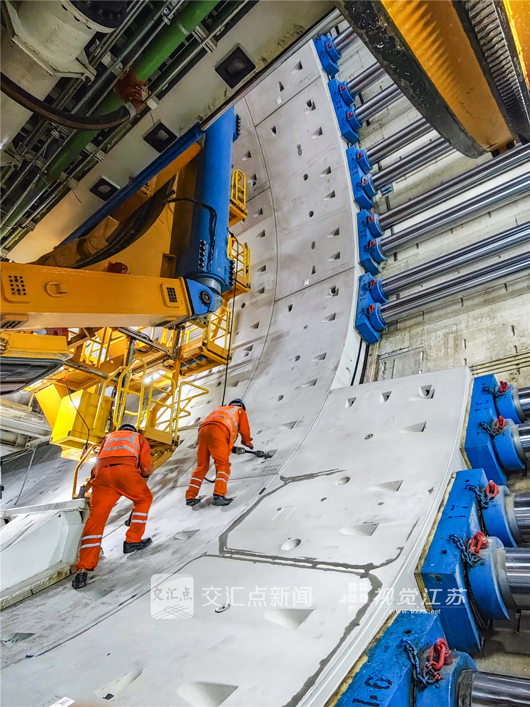 2月13日晚10点,地面上已进入万家灯火的过年模式,长江南通段江面以下60余米,世界最长公路水下盾构隧道——海太长江隧道的建设现场却是另一番热火朝天的景象,这里没有昼夜,没有烟花,只有重型机械永不停歇的轰鸣。