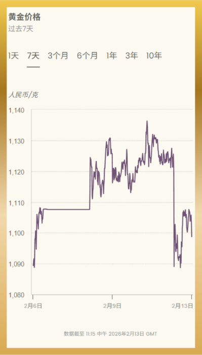 2月13日,截至目前金价企稳反弹,伦敦现货黄金重回4900美元/盎司上方,国内金饰价因春节消费需求涨至1560元/克附近,呈现 “现货企稳、终端涨价” 特征: