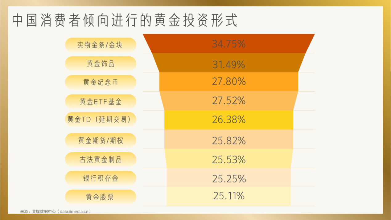 从中国消费者倾向的黄金投资形式来看: