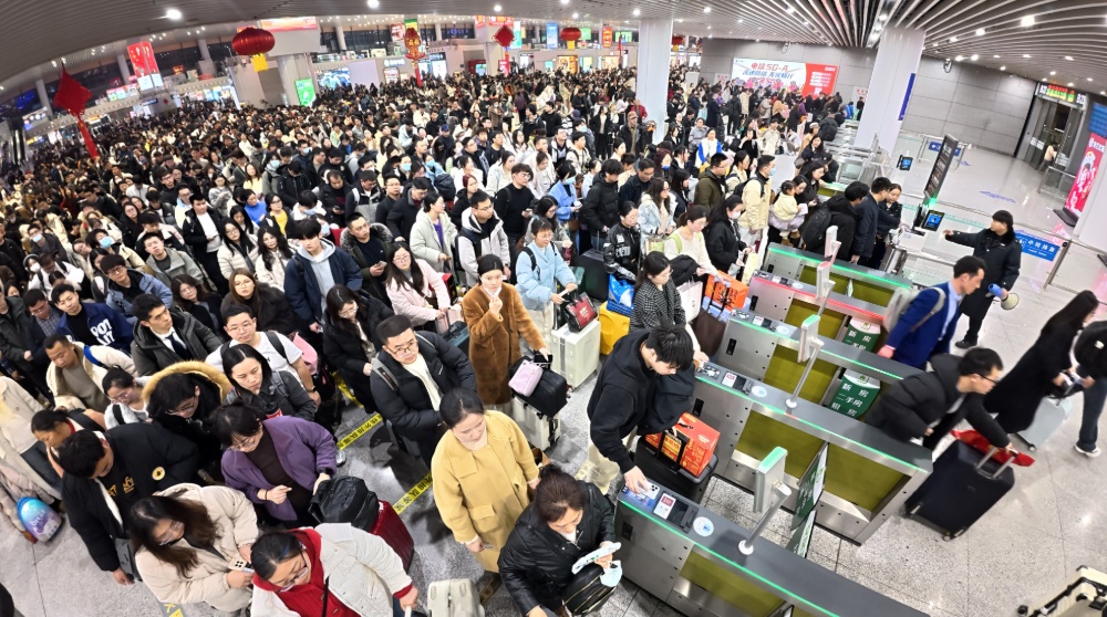当日,春运节前客流达到最高峰,南京南站单日发送旅客突破20万人次。