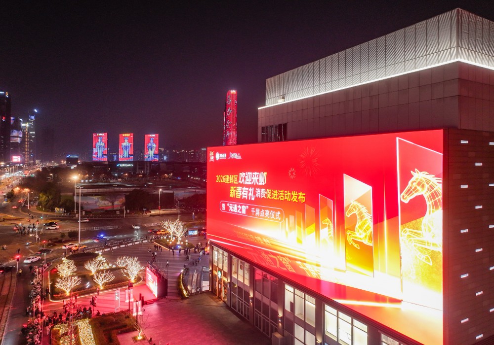 交汇点讯 2月14日,恰逢马年春节前最后一个工作日,南京市建邺区大街小巷暖意融融、喜气洋洋。2026建邺区“欢迎来邺·新春有礼”消费促进活动发布暨“元通之窗”亮屏仪式在华采天地举办,一场解锁新春消费新乐趣的发布会,一次点亮城市新地标的亮屏盛典,为即将到来的新春佳节注入满满活力。