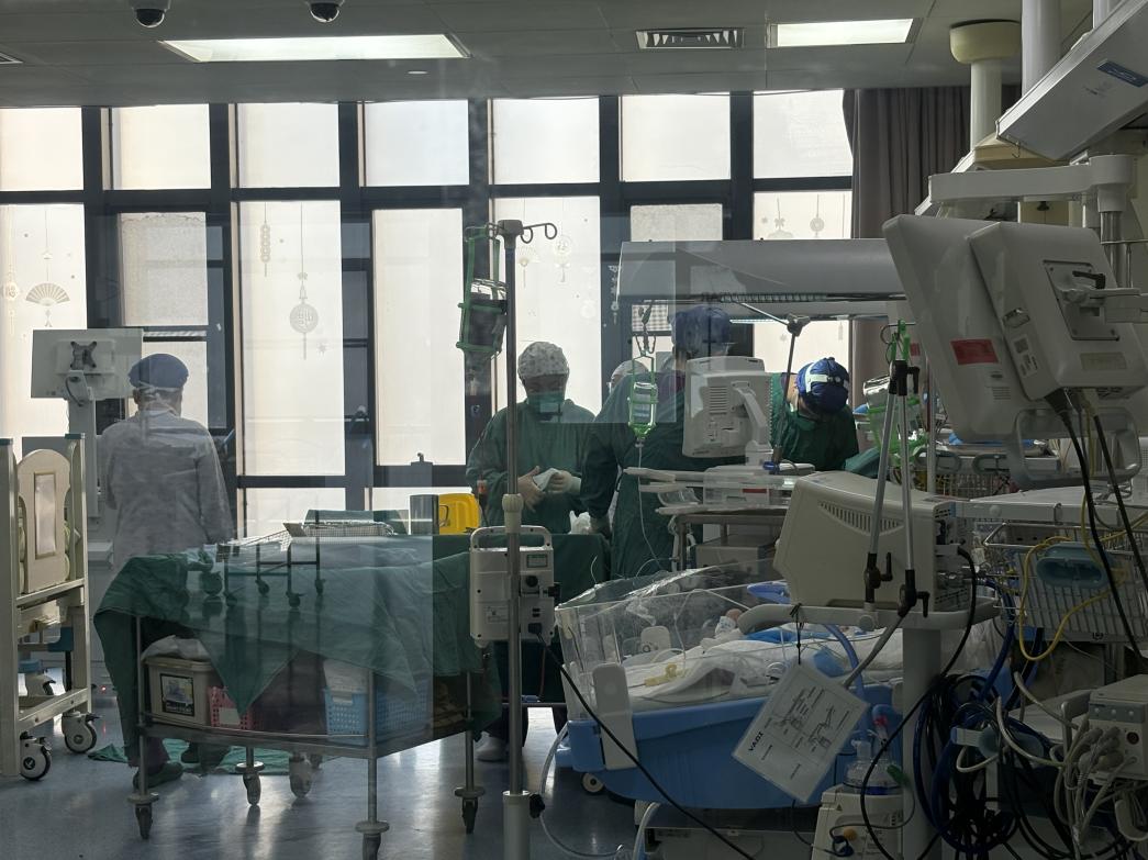 安静之下是持续不断的战斗。在重症监护室的病房里,孩子们大多患有先天性心脏病和重症气道疾病,生命体征瞬息万变,一天内可能发生许多次的抢救。有时候,重症监护室也会成为战斗的第一现场。