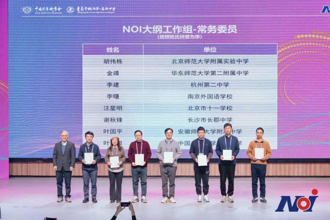在闭幕式上,NOI主席杜子德教授为NOI科学委员会大纲工作组的常务委员和委员颁发了聘书,并致谢参与大纲修订工作的所有老师,南外张超、李曙等三位教练上榜!
