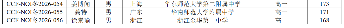 据了解,NOI冬令营2026期间还举行了IOI 2026中国国家队选拔。经过前期一系列选拔和最终答辩,许淇文(南京外国语学校)、刘家炜(重庆市巴蜀中学校)、赵晟昊(浙江金华第一中学)和何宇翔(重庆南开融侨中学校)脱颖而出,入选IOI 2026中国国家队。