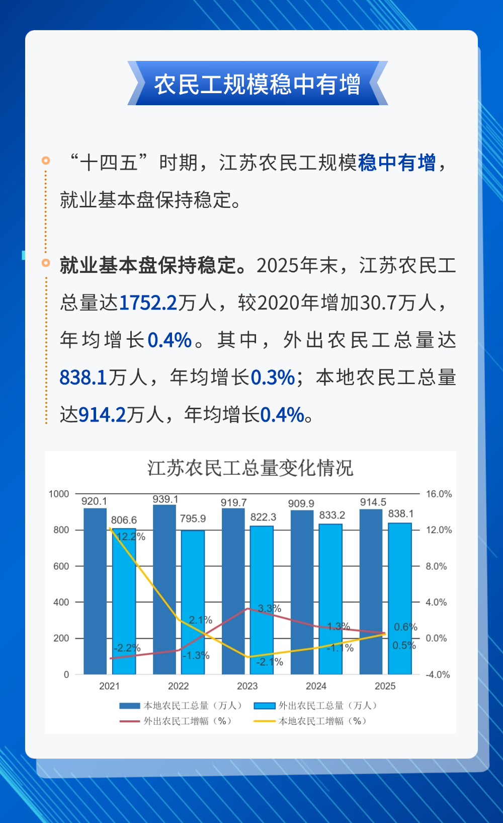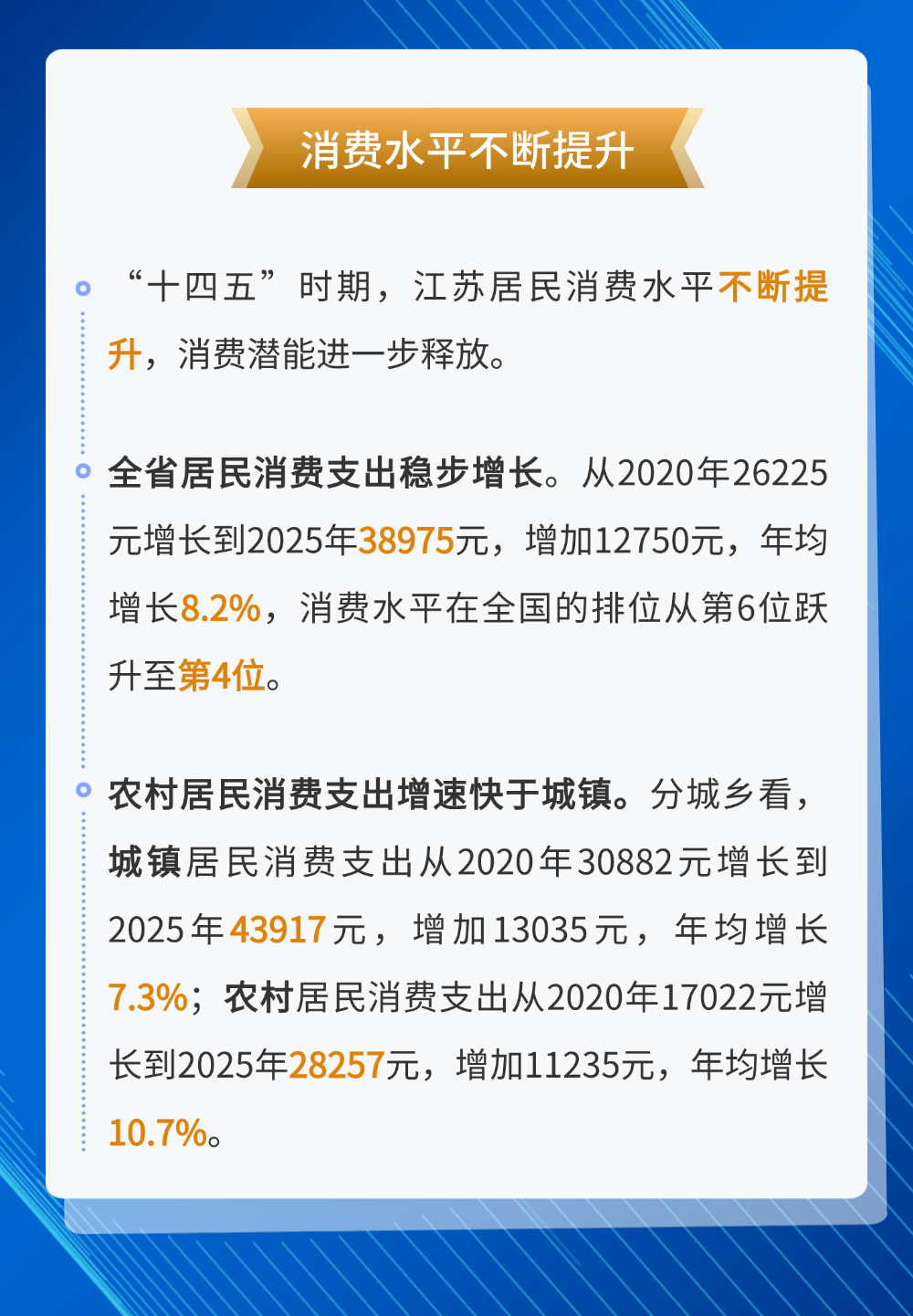 “十四五”时期,江苏坚持以人民为中心的发展思想,在高质量发展进程中用心用情保障和改善民生。全省居民收入保持平稳增长,居民消费能力持续增强,消费潜力有效释放。与此同时,劳动就业与权益保障水平不断提高,民生福祉持续增进,发展成果更多更公平惠及全体人民,一起来看具体情况。