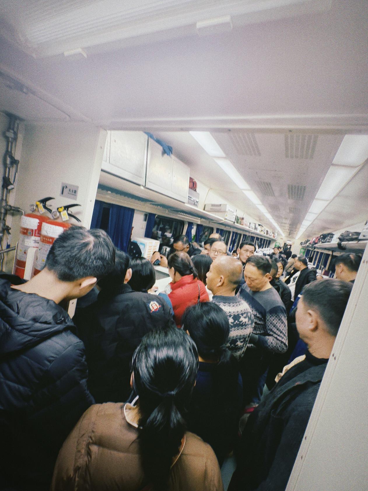 K136次列车不一般。全程2783公里,往返一趟需要82小时44分,横跨江苏、安徽、江西、湖南、贵州、云南六省,停靠32个车站。春运期间,这趟车人流如潮是常态。记者穿过拥挤的车厢,过道上没买到座票的务工者坐在自备的小马扎上。当一路挤到7号餐车时,看到的却是另一番火热景象:热气蒸腾,锅铲翻飞。