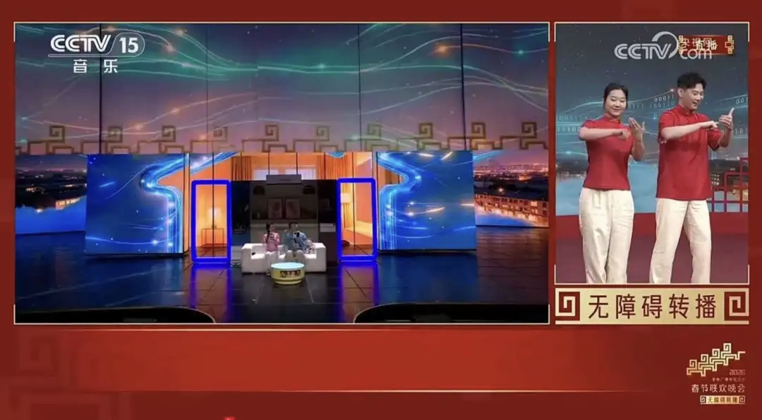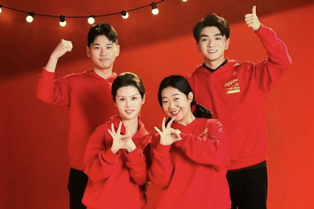 交汇点讯 记者从江苏师范大学获悉,在央视音乐频道、央视频等平台同步推出的《2026年春节联欢晚会》无障碍转播中,该校手语播音主持方向研究生侯文龙、李沛颖、谢远鹏、李敏在直播中以专业手语为听障观众提供实时转译服务,传递春晚精彩,送上新春温暖。