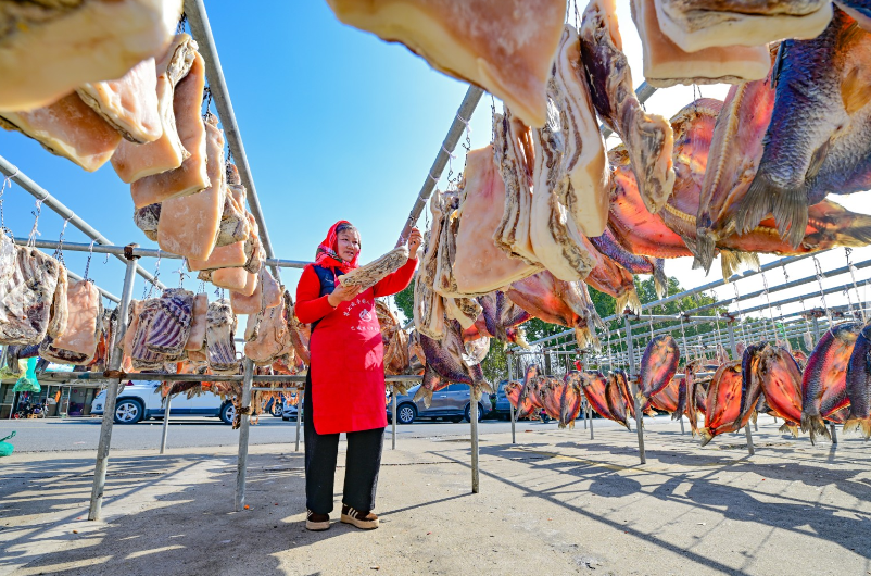还有腊味,古人过年也离不开。早在西周时期,《易经》便有“晞于阳而炀于火,曰腊肉”的记载,意思先在太阳下晒干脱水,再放到火上烘烤熏制,这样做出来的肉,就叫腊肉。这既是为了保存食物,更是为了留住岁月的滋味。“未曾过年,先肥屋檐”,寒冬腊月,屋檐下悬挂的腊肠、腊肉、腊鱼,便是新春最鲜明的印记。我们熟悉的陆游写的《游山西村》,里面有“莫笑农家腊酒浑,丰年留客足鸡豚”,这里的“鸡豚”,就包括腊鸡、腊肉,可见不管是富贵人家还是农家,过年都少不了腊味的身影。