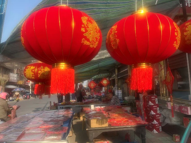 漫步在泰兴市滨江镇马甸村村头,一盏盏、一串串大红灯笼挂满枝头与灯杆,远远望去,如点点红星洒落人间,温暖而明亮。