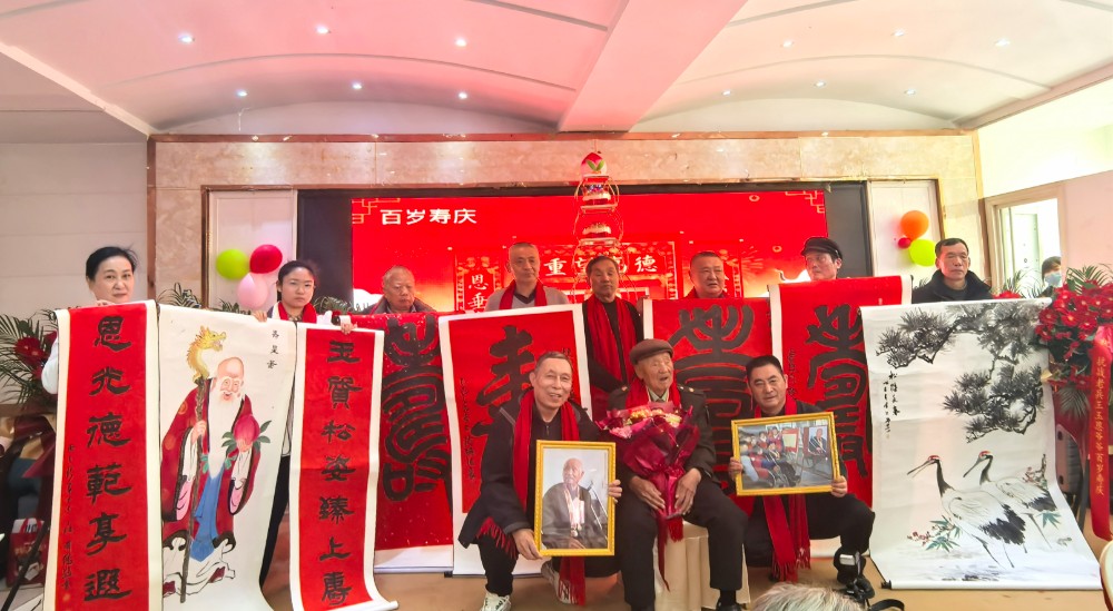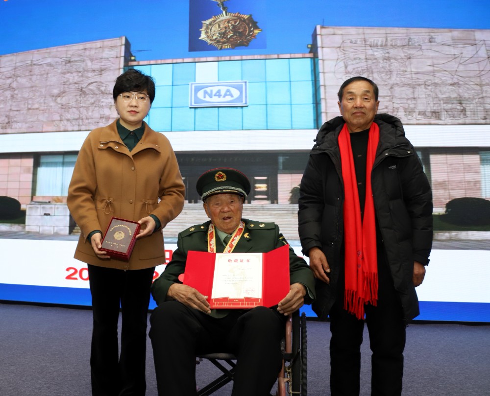 铭记峥嵘岁月,共贺期颐华章。2月19日,农历正月初三。盐城市滨海县,抗战老兵王玉恩举办百岁寿诞,同时举行王玉恩抗战胜利80周年、70周年纪念章捐赠仪式。中国人民抗日战争纪念馆革命文物部主任赵迪立,新四军纪念馆副馆长朱卓,分别接受捐赠,并向王玉恩颁发收藏证书,回赠抗战文创礼品。中共滨海县委宣传部常务副部长王永强、滨海县退役军人事务局、滨海县民政局、滨海县新四军研究会代表、百岁烈属陈士英和亲属代表、王玉恩亲友等200多人,共同见证这份光荣与喜悦!