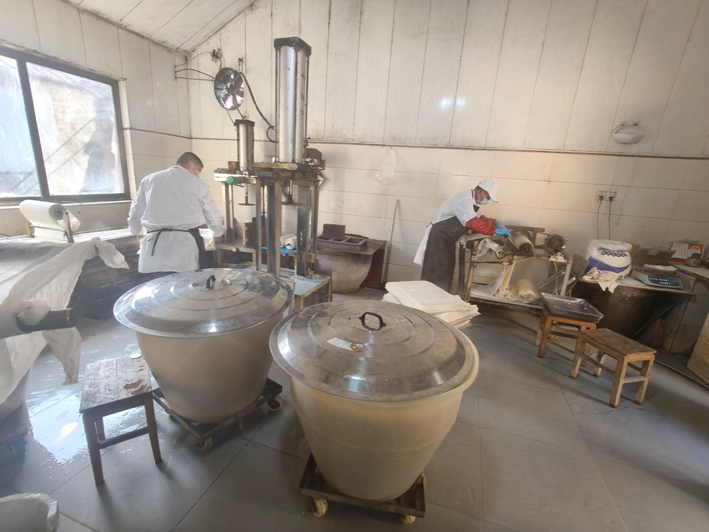 过年前的这段时间最为忙碌,订单堆得像小山一般。在当地,素来有“年底吃豆腐,一年都富”的说法,三必基豆腐成为小镇每家每户年夜饭上的必备品,乡里乡亲走亲访友,也总爱拎上几斤他家的豆制品。