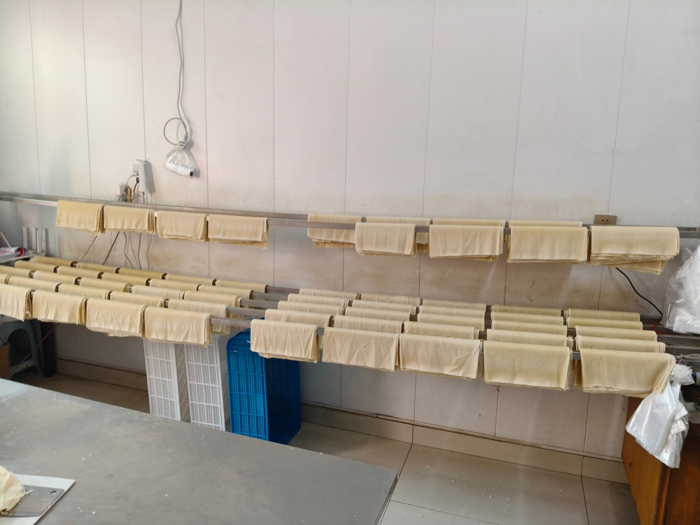日常工作中,刘得育对品质的要求,甚至可以用“吹毛求疵”形容。刘佩在一旁补充道,他会一个个检查晾干的豆皮,有一点点瑕疵的都不能卖,挑出来自己吃。“我爷爷也是,哪怕是打包,他也要求平整、好看,不能有褶皱。”