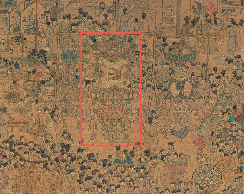 《上元灯彩图》里描绘的是明朝时期秦淮河畔上元灯会的盛景,其中的各式花灯有上千盏,这也是设计师每年都会深挖的文化宝库。然而,要从古画名作中梳理创作并不是一件容易事。“这幅古画年代久远,画面并不清晰。想要从中提炼出人物和灯彩,就得一笔一笔耐心地去梳理、描摹,仅这项工作就用了一个多月。”
