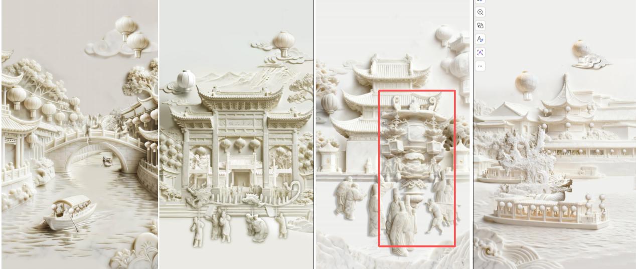 李静雯以一件四面浮雕着古今秦淮盛景的“风雅情怀琉璃灯”举例,表示“这件文创产品的背后,浓缩的是秦淮灯会百年历史”。为什么敢这么讲?这盏琉璃灯的四个面上的浮雕各有千秋,“光浮雕的设计稿就改了八版以上”。李静雯介绍,其设计融合了两条线索:一是现代秦淮风光地标,二是明代古画《上元灯彩图》中古人观灯的盛景。百年古画中的鳌山灯、舞龙灯都被融入了琉璃灯罩上,更富巧思的是,其中一面的浮雕还安排了一场“古今对望”:在夫子庙的文源桥上,刻画了几个取自画作中的古人。“当几百年前古人在明朝灯会中观灯的模样,被留刻在如今现实生活中还仍然可见的文源桥上,一场穿越时光的联结在这件作品上实现了。”