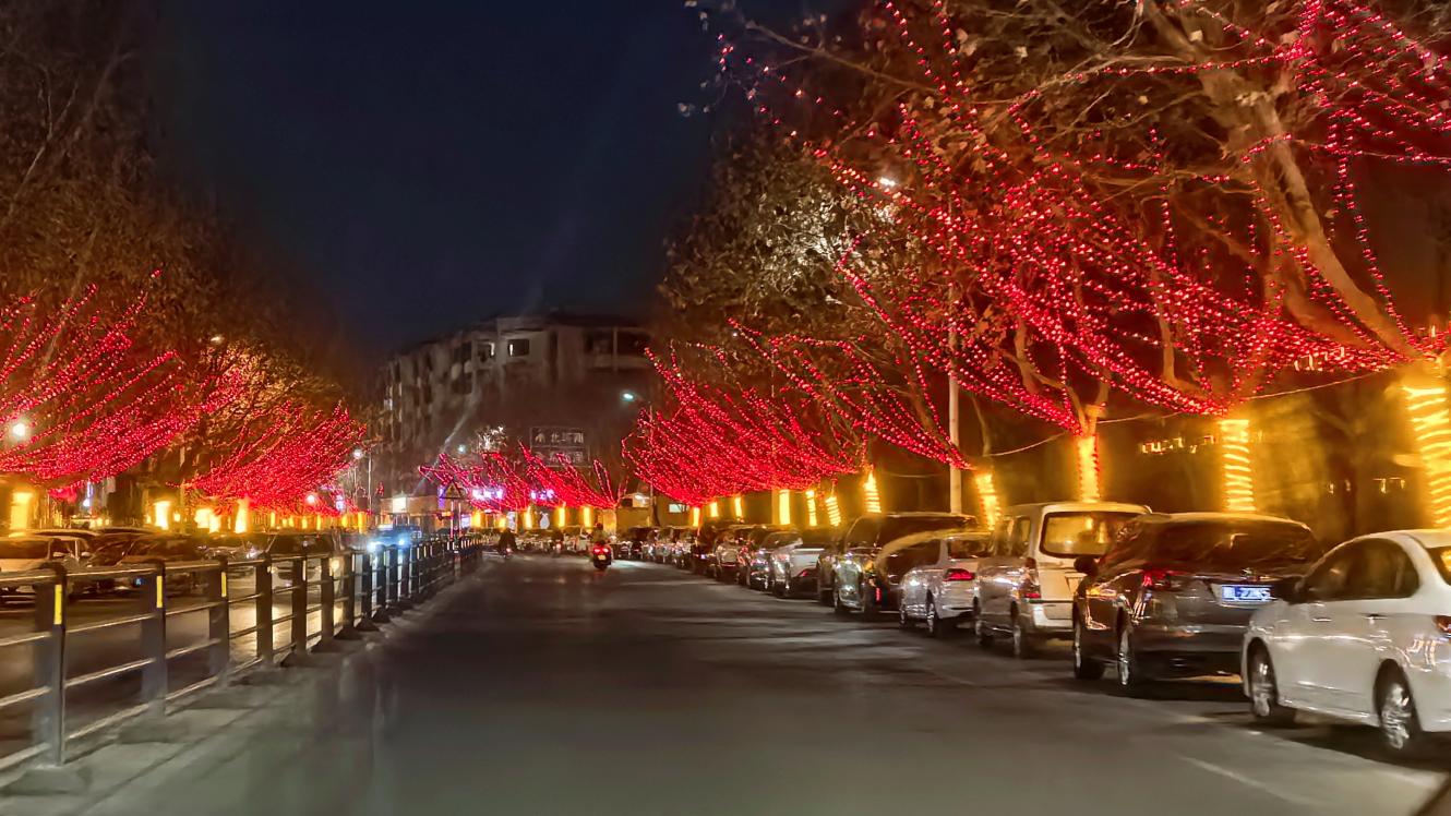 记忆里的霍州夜色,总带着几分沉静,而今夜,灯火却比印象中亮得太多。行道树上缠绕的点点星光,路灯下悬挂的串串红灯笼,把整条街道烘得暖意融融。摇下车窗,北方冬日清冽干燥的风扑面而来,那是独属于家乡的气息,熟悉得让人鼻尖一酸。