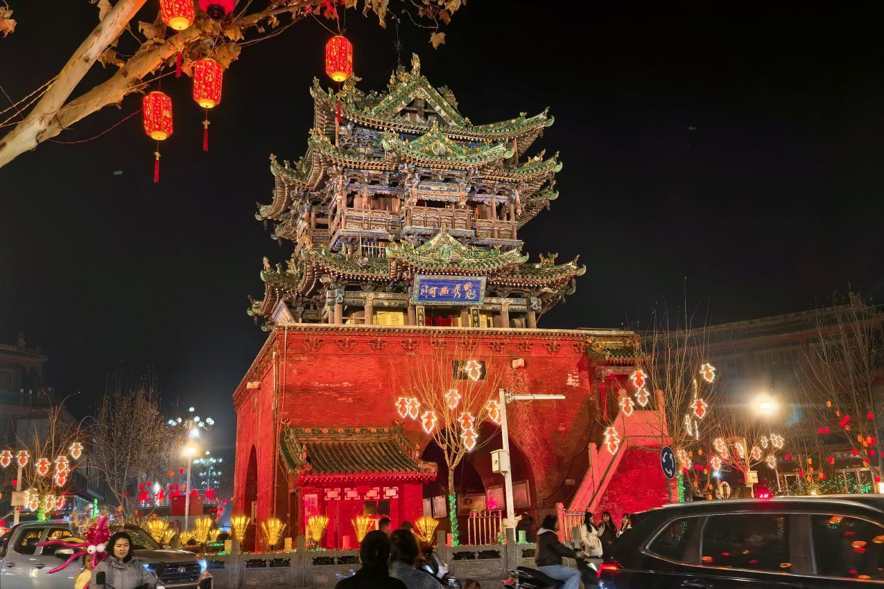 大年初三的夜晚,我来到鼓楼。这座明万历年间建成的文昌阁,矗立在十字街心四百余年,看尽朝代更迭、人来人往。檐角二十八星宿琉璃造像沐光生辉,翼下风铃随风作响,清脆声响里,藏着岁月沉淀的厚重。