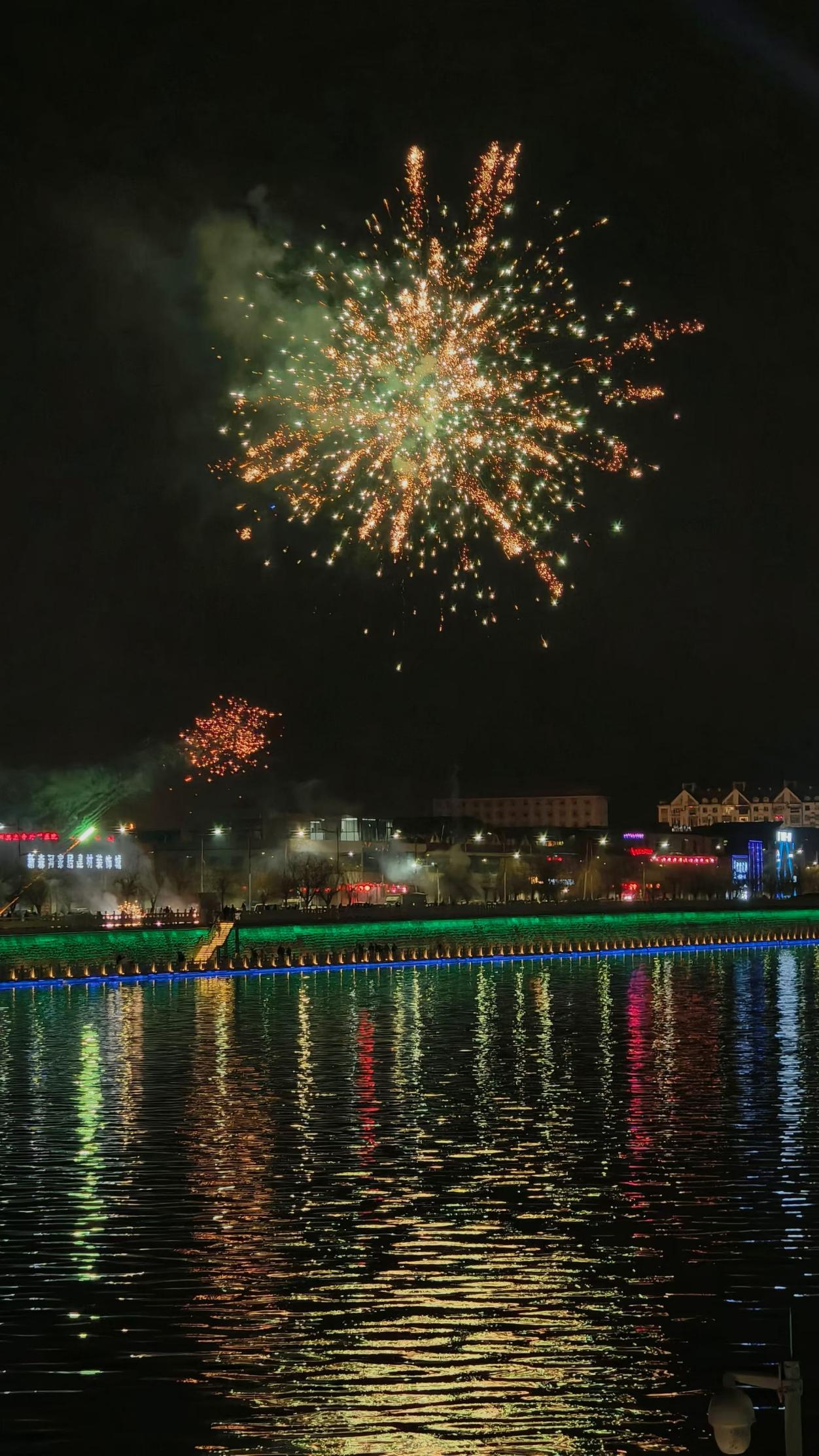 暮色降临,汾河景观带亮起斑斓灯带,红、黄、蓝、绿几色光影倒映河面,波光粼粼,让这条山西母亲河焕发出新的生机。远处烟花腾空绽放,欢呼声此起彼伏,为新春添上热烈注脚。