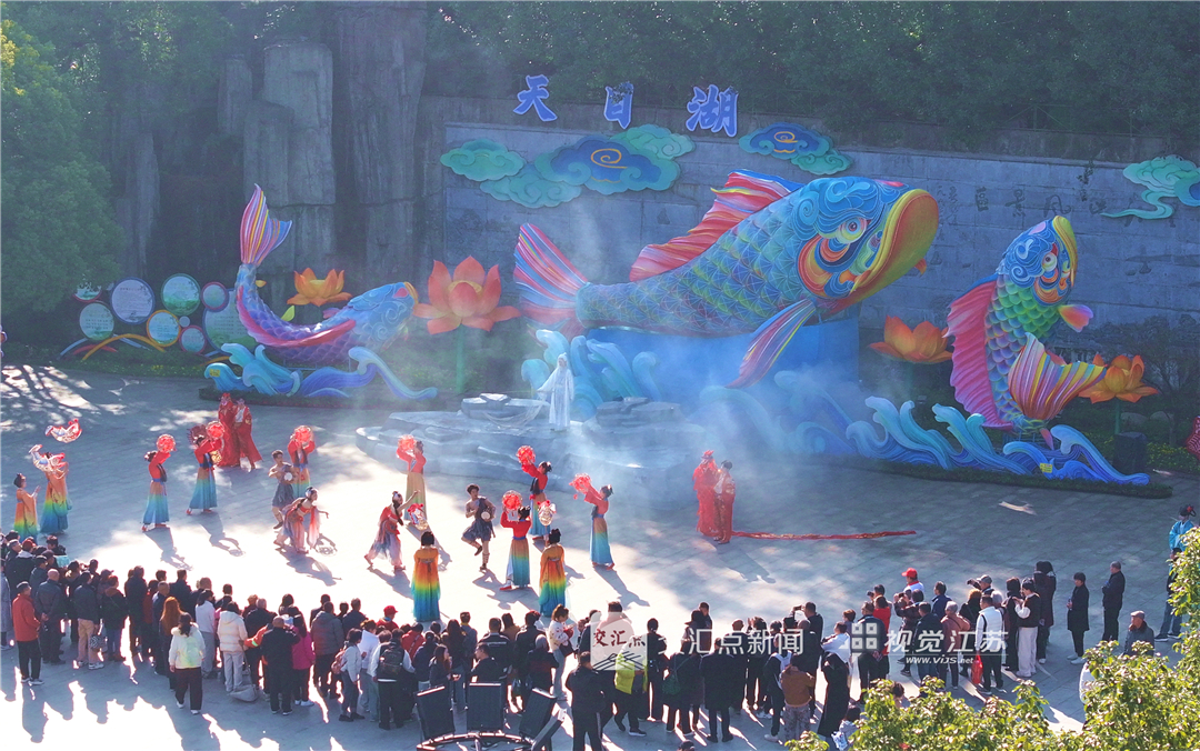 2月20日,天目湖山水园以“新年喜乐汇”为主题,推出首部江南实景山水行进式大秀,以渔乡贺岁·醒春、非遗鱼灯等传统民俗元素活态呈现,节目丰富多彩,引得游客驻足观看。王晓云 摄