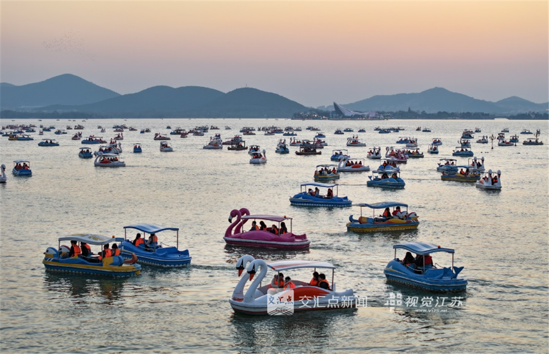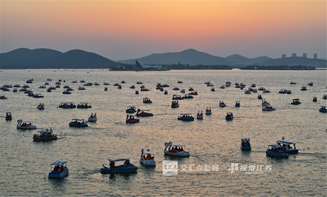 (特约摄影 高刚 18:15摄 19:27上线)2月22日,徐州云龙湖游船如织,游客沉醉于湖光山色与落日余晖,流连忘返。