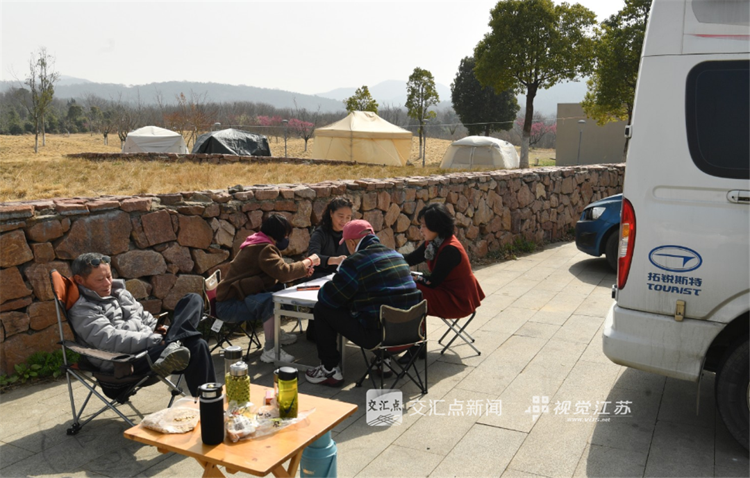 (记者 吴俊 11:11摄 12:51上线)2月22日,南京浦口区老山脚下房车基地,不少自驾爱好者在营地度假。大山、湖水、帐篷、梅花,形成“慢旅行”的新春场景。