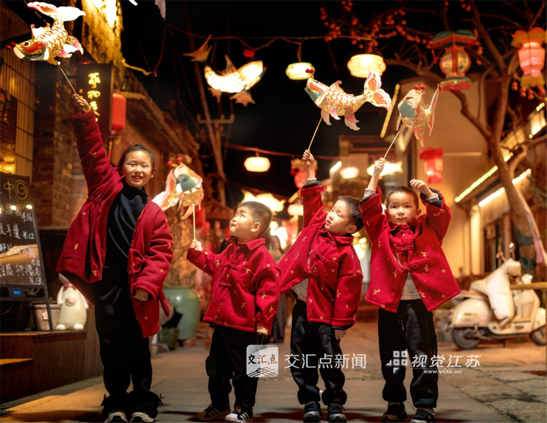 (特约摄影 朱成玲 19:32摄 23:15上线)2月21日,大年初五,淮安蒋坝老街的非遗鱼灯巡游如约启幕,几个小朋友手牵着手,举着鱼灯凑成一团,镜头里满是亮闪闪的笑意和古镇的烟火气。