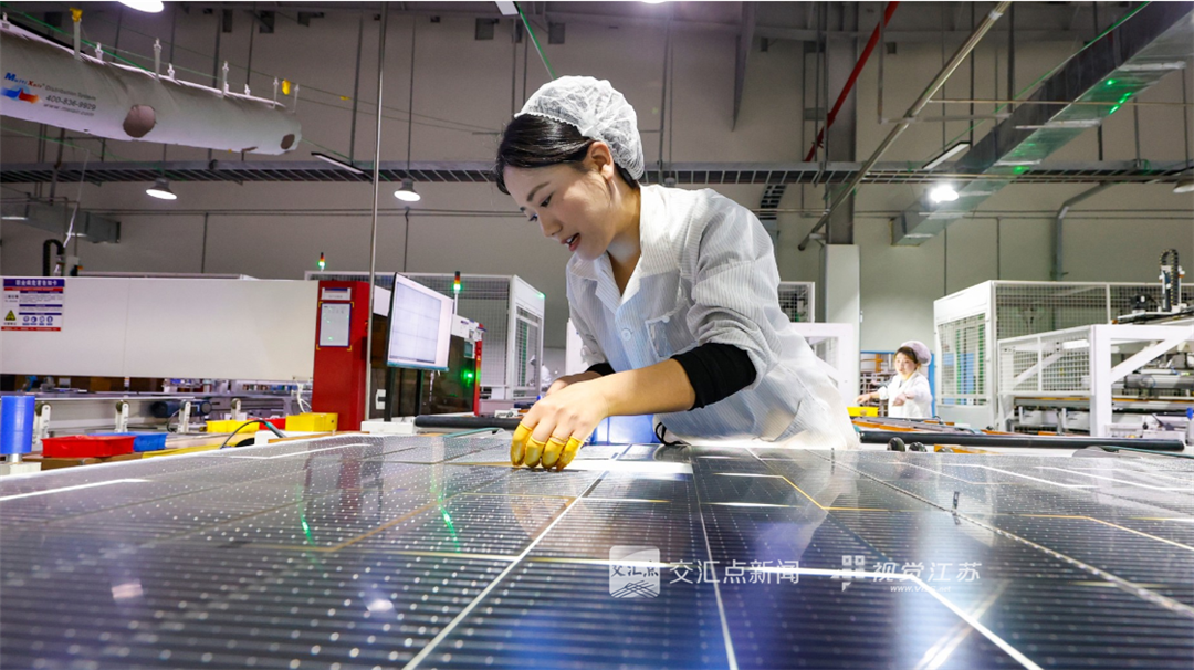 (特约摄影 许昌亮 10:29摄 17:41上线)2月22日,泗洪经济开发区,江苏东磁新能源科技有限公司员工在生产线上赶制出口光伏设备订单。