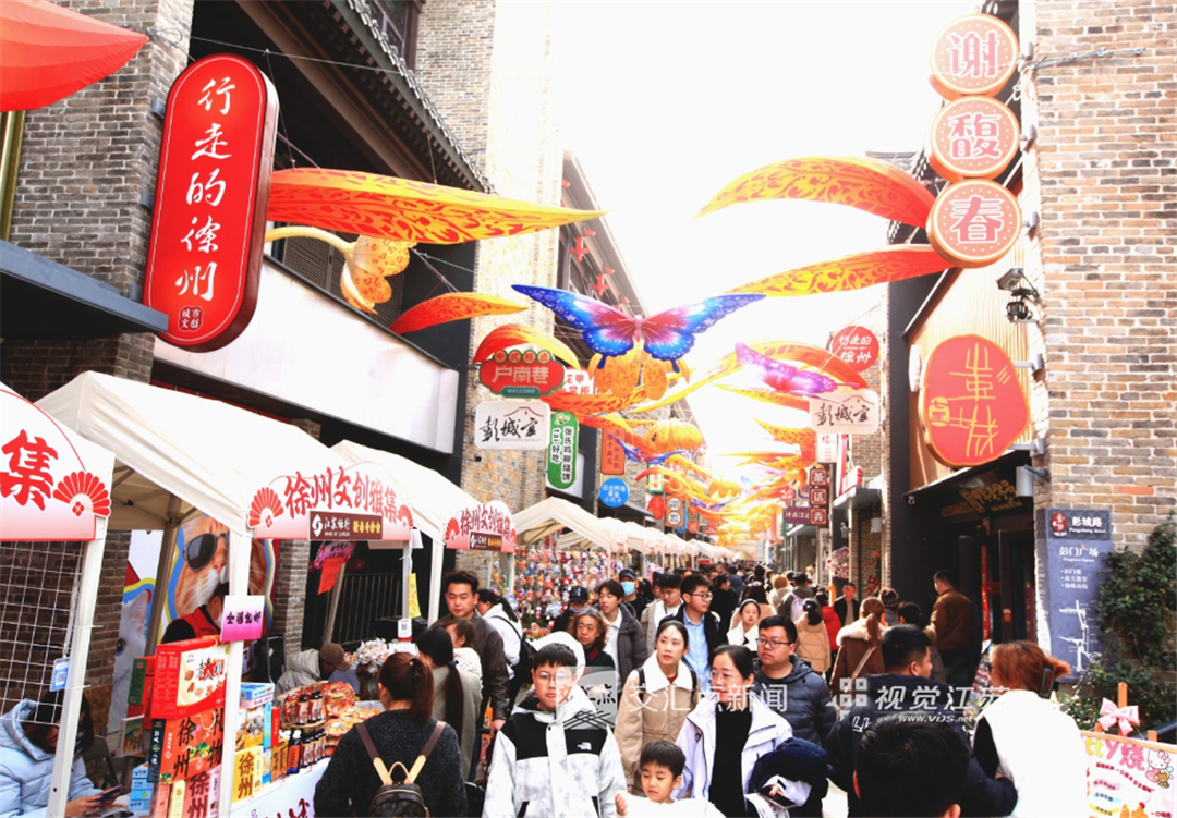 春节假期,徐州历史文脉——彭城七里沿线的新业态新场景吸引众多市民游客前来体验,核心节点游人如织、消费火热,呈现出文旅兴旺的新春盛景。
