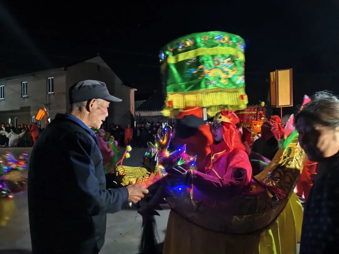 杨家马灯不仅是一项民俗表演,更是一本活着的村史,已有约80年历史,今年是第四次表演。“上一次跳马灯,我还是个举着排灯的小伙子,今年我儿子也上场了。”村民杨军站在队伍旁,他13岁的儿子杨子谦,今年扮的是“八仙”之一的吕洞宾。