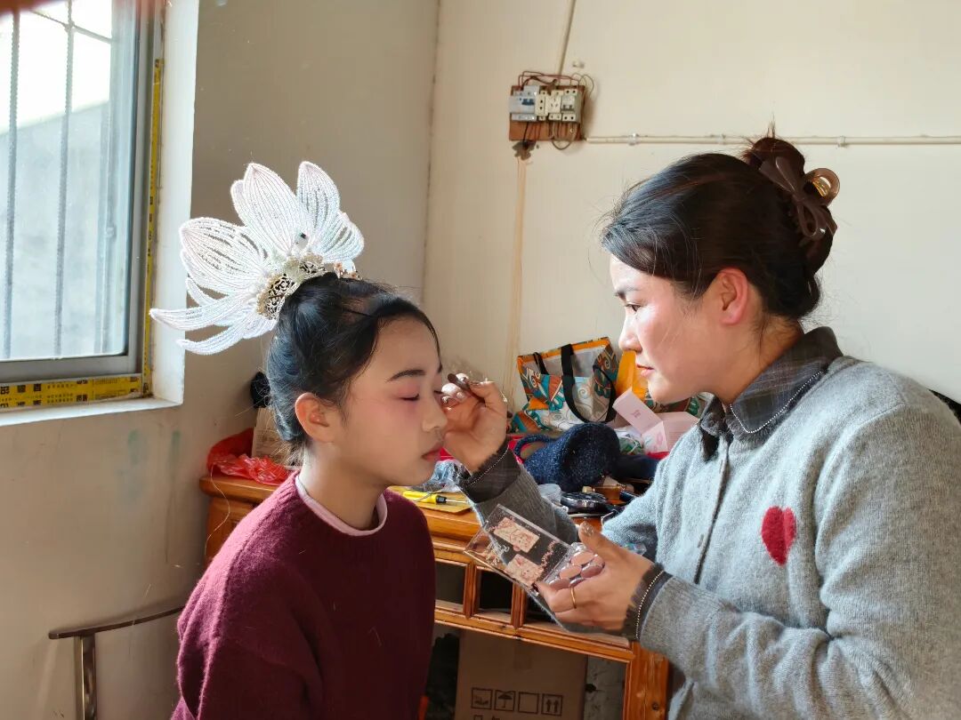 2月20日,年味正浓,南京市溧水区石湫街道社东社区杨家村的杨氏宗祠里热闹非凡。几位村民化身“化妆师”,在孩子们脸上细细描摹。勾眉、勾眼、勾纹、抹面……不一会儿,一张张稚嫩的脸庞,装扮成了吕洞宾、韩湘子、铁拐李等“八仙”的模样。“每个孩子的妆容都是精心设计的。”村民杜保花笑着为小演员化妆,语气里透着藏不住的自豪。“今年是马年,又赶上马灯重启,对我们意义太大了。”
