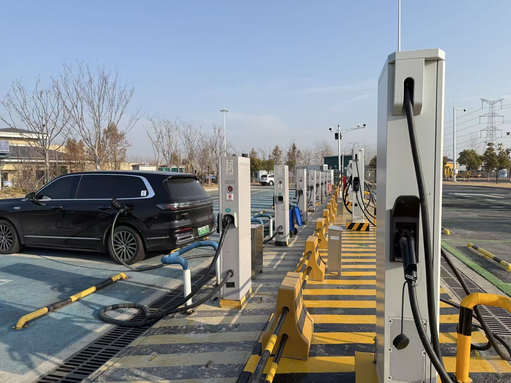 驱车20分钟,记者来到京沪高速刘老庄服务区,太阳能车棚和整齐排列的充电桩映入眼帘,充电护航员正在引导新能源汽车有序充电。一年前的春节,刘老庄服务区只有36把充电枪,曾被列为“充电繁忙服务区”。今年初,服务区拓展停车区域,客货分离,两侧充电枪增加至100把,用户体验显著提升。