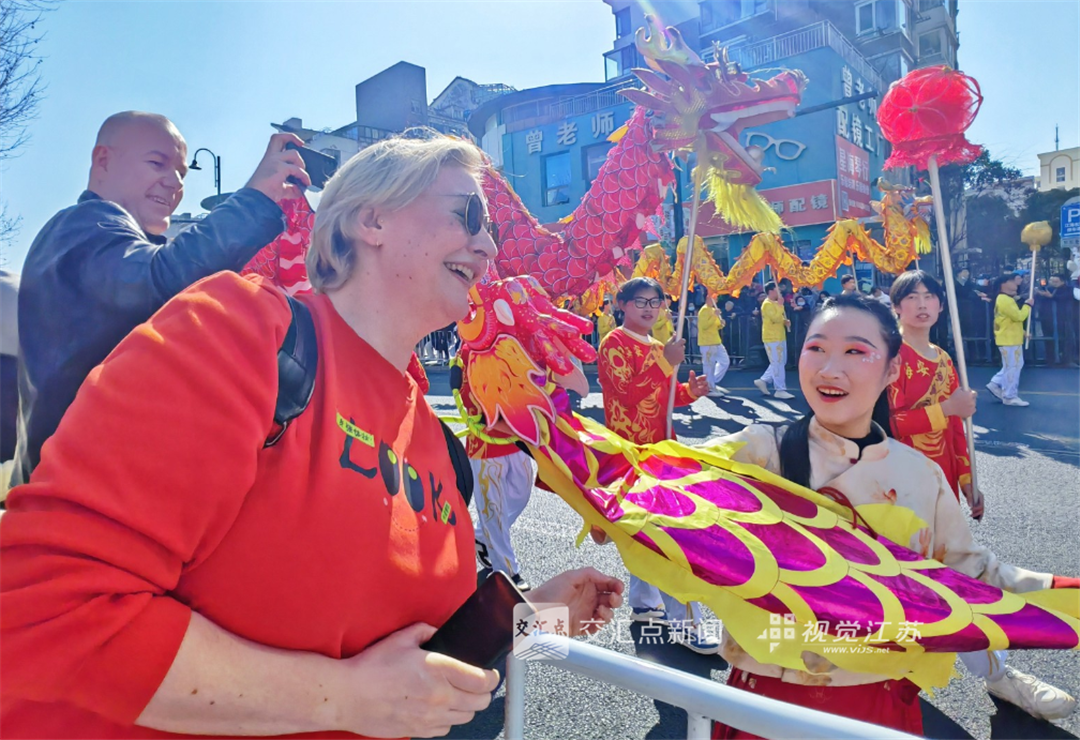 2026马年新春,江苏各地年味浓郁、活动纷呈。赏非遗、逛巡游、学技艺……一场场充满中国特色的新春文化活动,吸引了众多留学生、外国游客参与其中。他们沉浸式体验中华优秀传统文化,在热闹喜庆的氛围里,感受独具魅力的江苏年味,让“来江苏过大年”成为中外文化交流的温暖纽带。